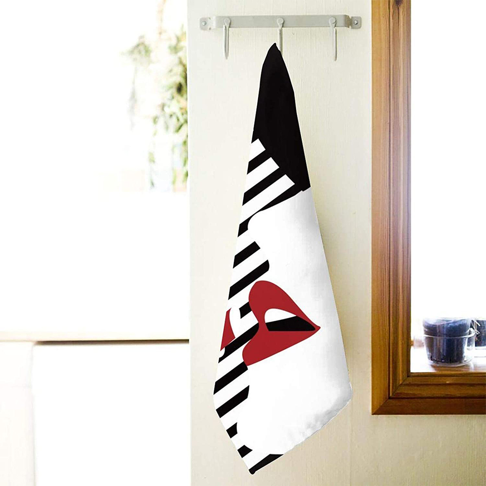 - ✿【DIMENSIONS】Our sexy red lip beautiful woman face hand towel measures 11.8″ x 27.5″ unfolded, perfect for your bathroom, kitchen or any place where a larger size towel is unnecessary.